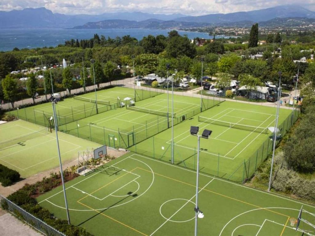 Det milde klima ved søen er ideel til en sport som tennis du kan faktisk spille udenfor allerede i forårets første dage. Selvom mange faciliteter er overdækkede, er der mange hoteller, campingpladser og sportsklubber, der tilbyder udendørs faciliteter, på grusbane eller syntetisk græs , og samtidig nyde brisen selv på de varmeste dage.