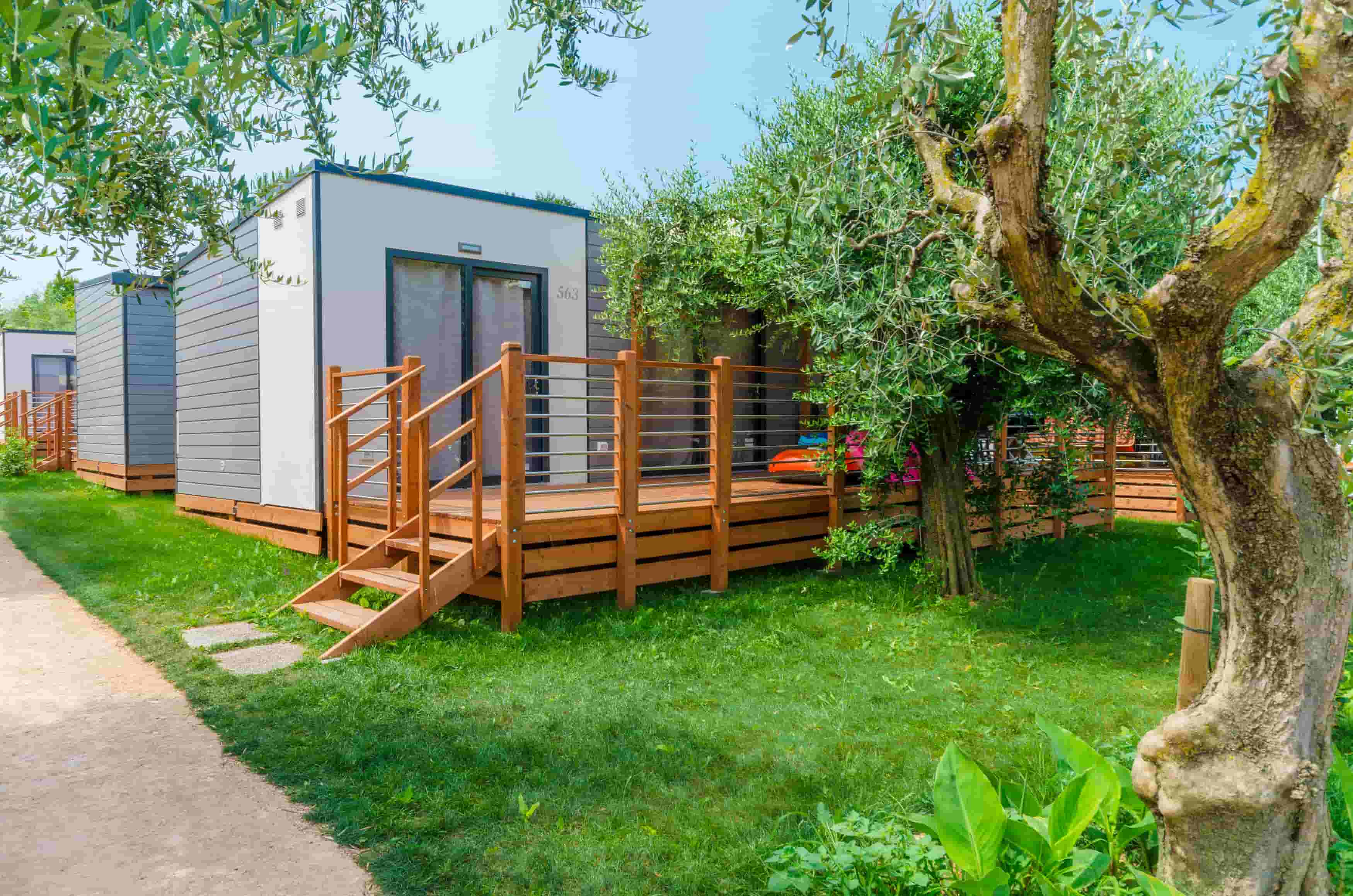 ELITE RIVA: Elite Riva mobilhomes er moderne boenheder med geometriske linjer og former i minimal luksus. Du vil føle det, som om du er ombord på en yacht, der er transporteret ind i et mobilhome takket være det hvide, sandfarvede og grå interiør. Disse mobilhomes er opdelt i et dobbeltværelse, et værelse med to enkeltsenge, to badeværelser og et tekøkken. Derudover er de udstyret med alle faciliteter, der allerede findes i Elite Mobile Homes.