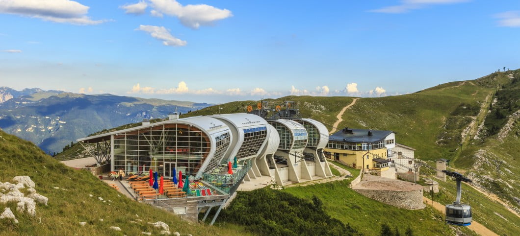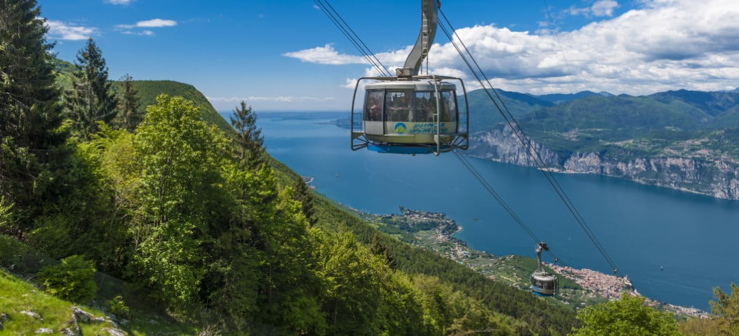 På kun 30 minutter, når du fra søen op i en højde af 1760 meter:en tur med Malcesine-svævebanen er en oplevelse, du ikke må gå glip af, og som er velegnet for både børn og voksne, hvorfra du kan nyde en betagende udsigt. Det mest karakteristiske er de roterende kabiner, der med deres rotationer, giver en 360 graders udsigt over et pragtfuldt landskab, på vej mod toppen af Monte Baldo.