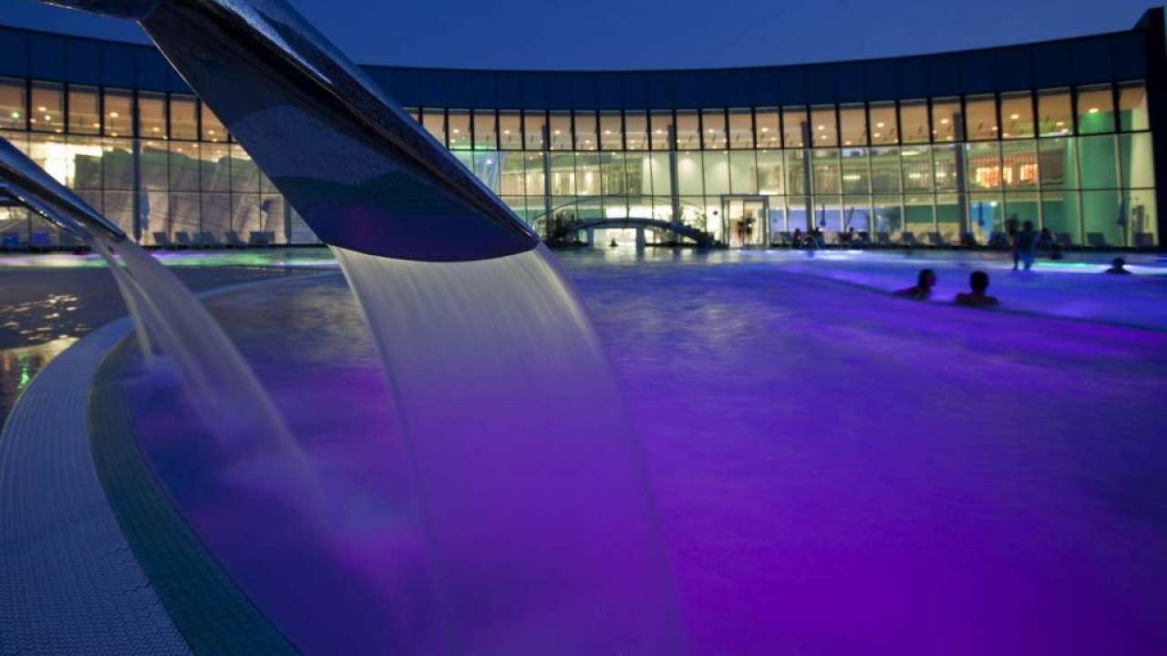 Eine innovative Anlage, die die wohltuende Wirkung des Thermalwassers mit Whirlpool und Musik-Farben-Therapie kombiniert und Sie an allen Tagen des Jahres in eine besondere Atmosphäre entführt. Die Wassertemperaturen variieren je nach Jahreszeit zwischen 28°C und 38°C.