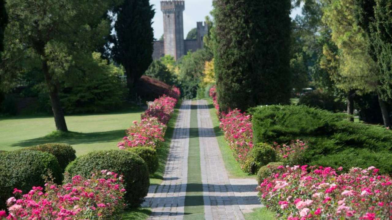 Die Rosenallee ist sicherlich das Bild, mit dem der Park „Parco Giardino Sigurtà” auf der ganzen Welt bekannt wurde. Er ist einen Kilometer lang. Jedes Jahr im Frühjahr blühen hier mehr als 30.000 Rosen der Sorten Queen Elizabeth und Hybrid Polyantha & Floribunda. Im Hintergrund der Rosenallee erhebt sich die Skaligerburg (X-XIV Jahrhundert). Sie befindet sich zwar außerhalb des Parks, ist aber aufgrund eines raffinierten Perspektivenspiels ein fester architektonischer Bestandteil der Parkanlage.