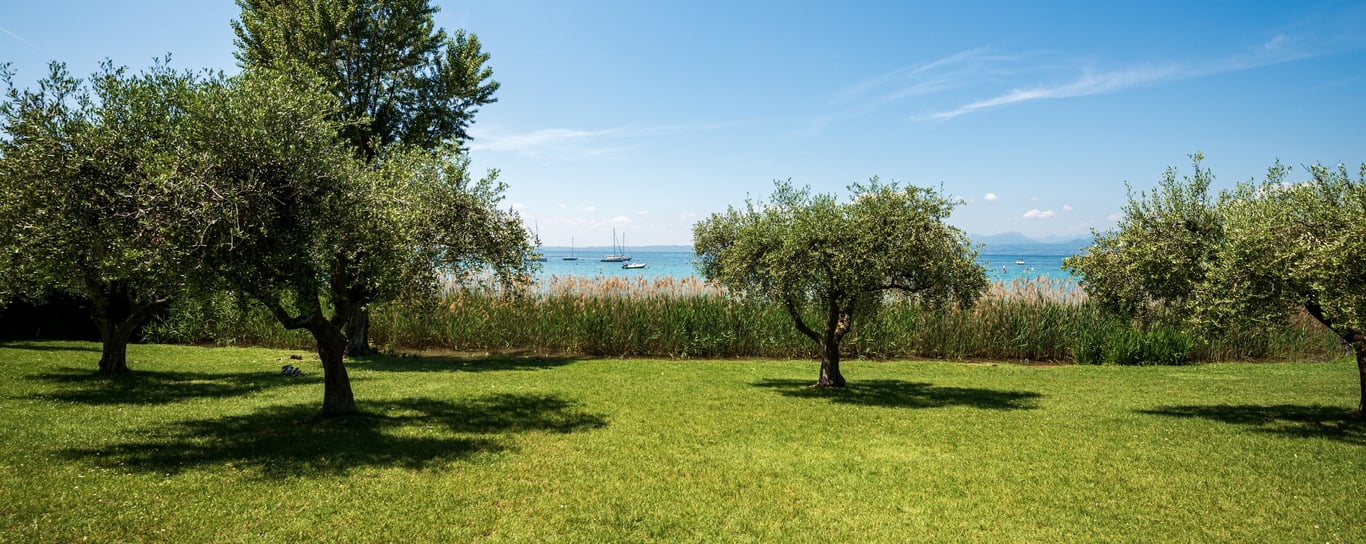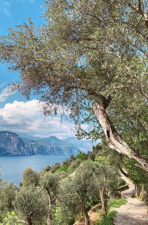 Costeggiando le sponde orientali del Lago, il paesaggio regala un’immersione nelle sfumature del blu del cielo e dell’acqua, e del verde, ora acceso, ora argentato, date dall’importante presenza di coltivazioni di alberi da ulivo.Nota come la Riviera degli Ulivi, quest’area vive di una tradizione antichissima di olivicoltura risalente addirittura all’Età del Bronzo, esaltata durante il Medioevo dai frati che abitarono la zona.